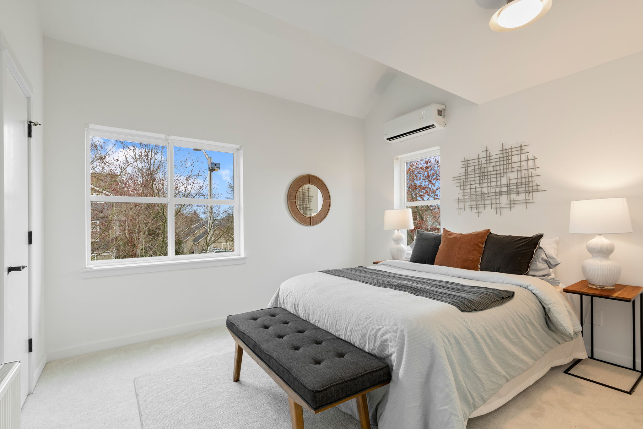 King-sized primary suite with ensuite bath, walk-in closet, natural light, and peek-a-boo Mt. Rainier views
